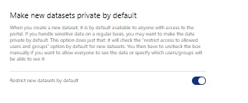 It would be better if every new data set was set to “Access restricted to allowed users and groups” if that is the setting